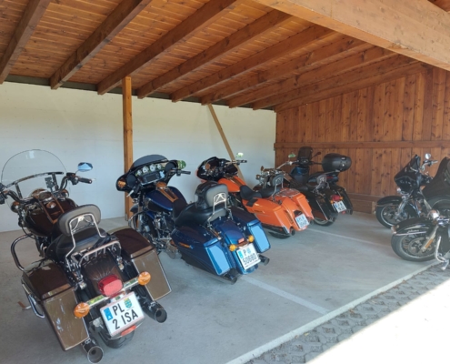 Unser großer, teilweise überdachter, Parkplatz bietet genügend Platz – auch für LKW und Busse!